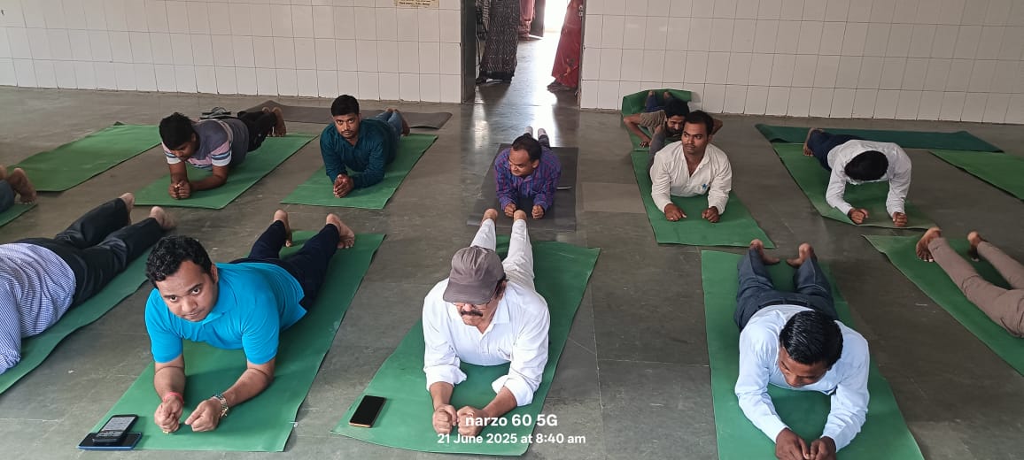 सामुदायिक स्वास्थ्य केंद्र मछरेहटा में योग दिवस पर योग करते स्वास्थ्य कर्मी