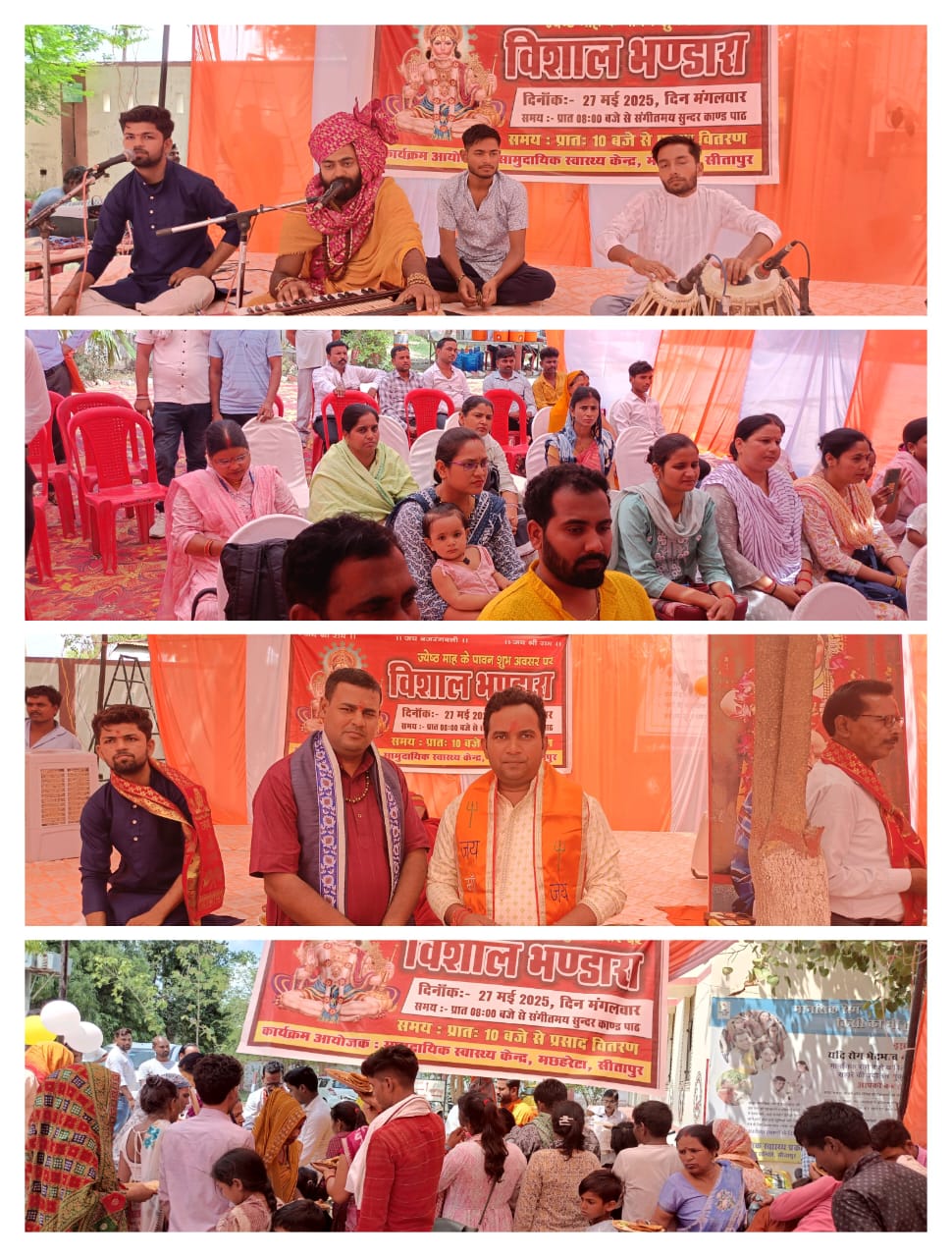 सीतापुर। ज्येष्ठ मास के तीसरे मंगलवार को सामुदायिक स्वास्थ्य केंद्र मछरेहटा में डॉ कमलेश कुमार द्वारा संगीतमई श्री सुंदर कांड पाठ का आयोजन रामकथा मर्मज्ञ पंडित हरिओम बाजपेई लखनऊ के द्वारा भव्य दिव्य प्रस्तुत किया गया इसके अलावा विशाल भंडारा का आयोजन पूरे दिन किया गया जिसमें पूड़ी सब्जी, छोला चावल , बूंदी का प्रसाद श्रद्धालुओं को वितरित किया गया मुख्य चिकित्सा अधिकारी डॉ सुरेश कुमार, अजय भार्गव, दिलीप मिश्र, बबलू सिंह, रोहित शास्त्री, डॉ अवनीश कुमार, डॉ ध्रुव लहरी, डॉ अरुणा राठौर, डॉ अमिता राजवंशी, प्रभात दीक्षित, मंदाकिनी दीक्षित, श्वेता सिंह, पुष्पा देवी , नीलम देवी, रश्मि मिश्रा, राजन रस्तोगी, रमेश गुप्ता , शंभू दयाल, पवन सेठ, जितेंद्र सिंह, वासुदेव कामता प्रसाद इसके अलावा क्षेत्र के समाजसेवी, पत्रकार गण सैकड़ों लोगों उपस्थित रहे।